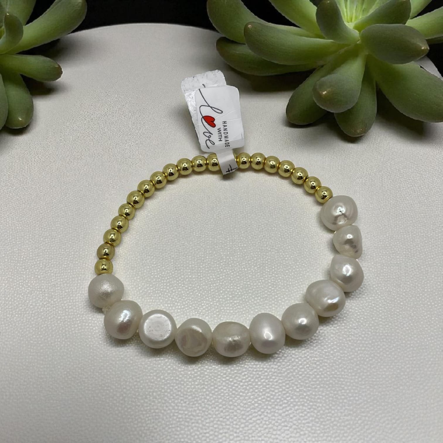 Pulsera Perla de rio dije corazón en baño de oro de 14K